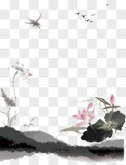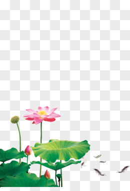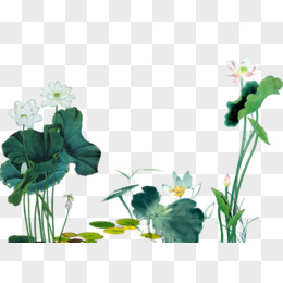 手绘池塘锦鲤和荷花夏季国潮微景观素材