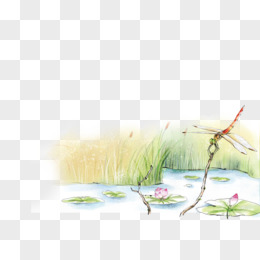 手绘免抠荷花池塘素材元素