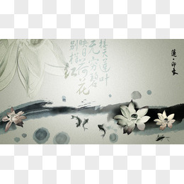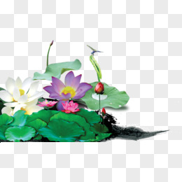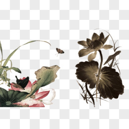 水墨风古风在池塘中的彩色荷花免抠元素