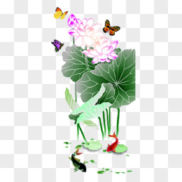 荷花蝴蝶鲤鱼