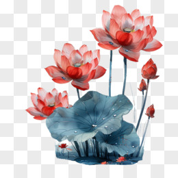 手绘荷花荷叶免抠元素