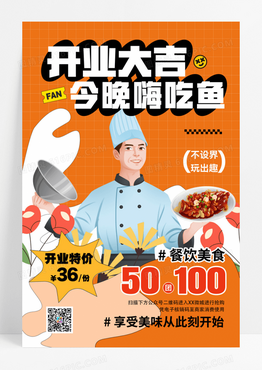 开业大吉今晚嗨吃鱼凯斯哈林风美食文案海报