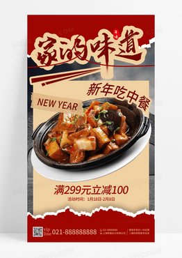 红色简约摄影家的味道新年吃中餐手机宣传海报