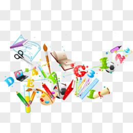 一组卡通可爱背包女孩文具系列开学贴图元素