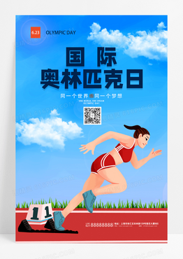 蓝色手绘跑步国际奥林匹克日宣传海报设计