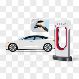 3D卡通灰色的新能源汽车在充电桩充电免抠元素
