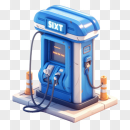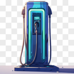 3D卡通一个蓝色电动汽车充电桩免抠元素