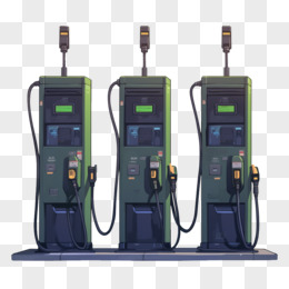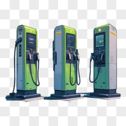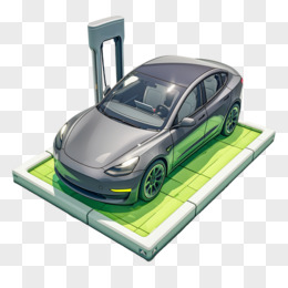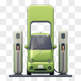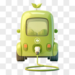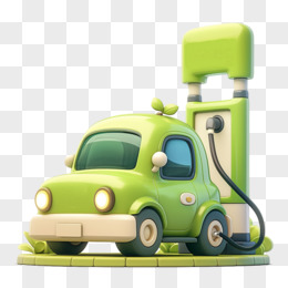 3D卡通绿色新能源汽车在充电桩充电免抠元素