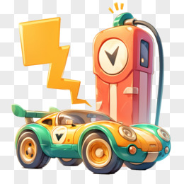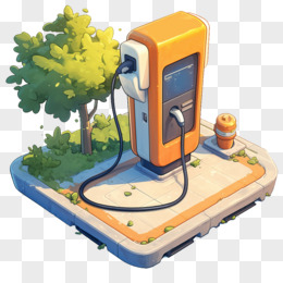 3D卡通带插头的新能源汽车在充电桩充电免抠元素