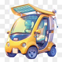 3D卡通车顶有太阳能板的黄色新能源汽车免抠元素