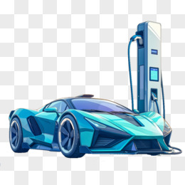 3D卡通蓝色新能源跑车在充电桩充电免抠元素