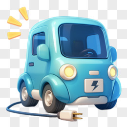 3D卡通带插头的蓝色新能源汽车在充电桩充电免抠元素