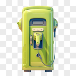 3D卡通一个绿色电动汽车充电桩免抠元素