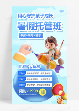 暑假托管班招生蓝色充气膨胀风AIGC海报