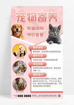 粉色可爱宠物寄养宠物服务猫狗养护海报