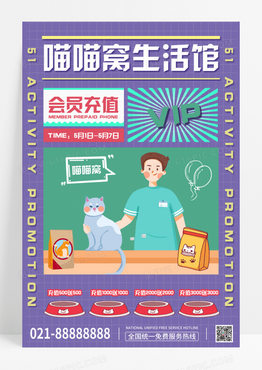 喵喵生活馆生活馆宠物店宣传海报会员充值促销海报