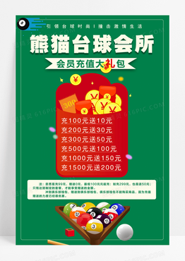 台球会所会员充值礼包优惠海报