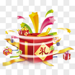 手绘卡通红色幸运的大礼盒优惠券奖品盒子