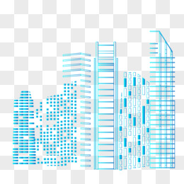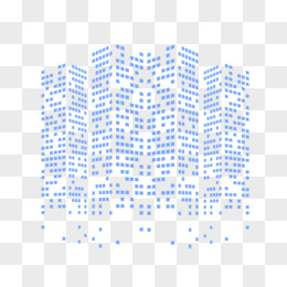 手绘渐变蓝色抽象点状城市免抠效果素材