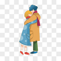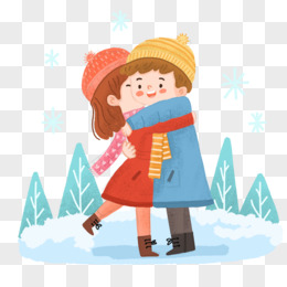 卡通手绘穿冬装拥抱的情侣素材