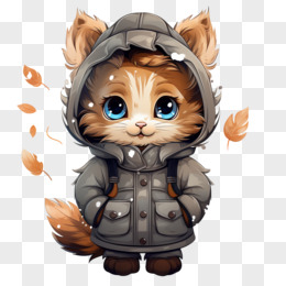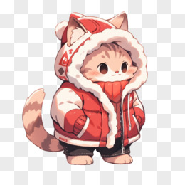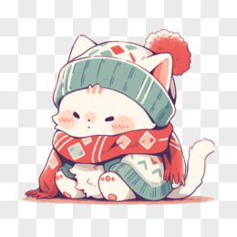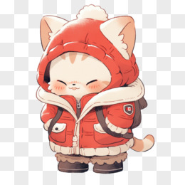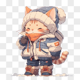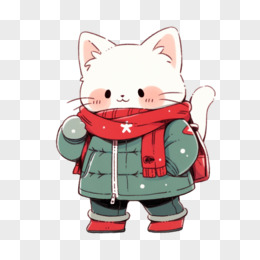 插画风小猫穿冬装免抠素材
