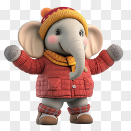 3D动物大象穿冬装免抠元素