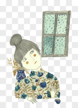 卡通窗外下雨
