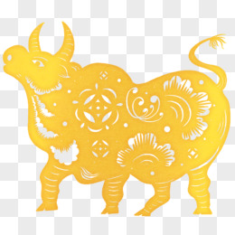 金色剪纸牛生肖窗花剪影