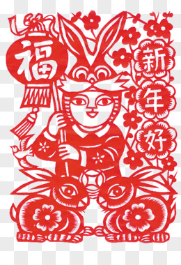 手绘卡通妈妈和女孩贴窗花剪纸元素