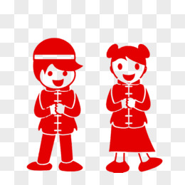 红色拜年人物剪纸