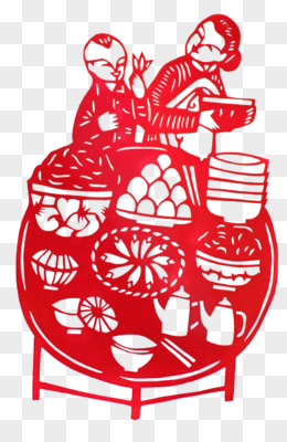 一桌子年夜饭剪纸