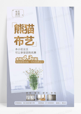 白色极简风布艺会馆团购优惠海报窗帘海报