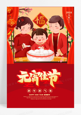 红色手绘元宵佳节元宵节海报元宵节节日设计