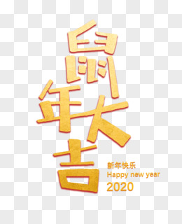 福二零二零鼠年黄金质感创意金色中国风立体艺术字