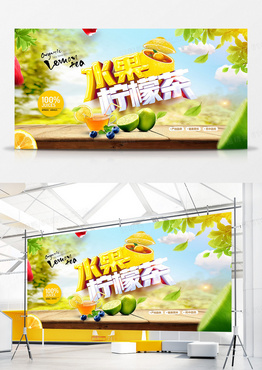 创意大气夏日饮料水果柠檬茶展板