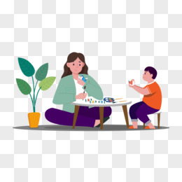 扁平风大人教孩子手工绘画制作场景元素