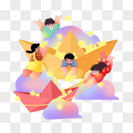 手绘创意梦幻微景观星空纸船捕捉星星素材