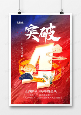 红蓝国潮风年会倒计时4天海报设计