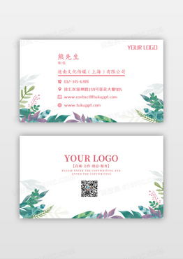 水彩绿植手绘植物创意教育培训名片