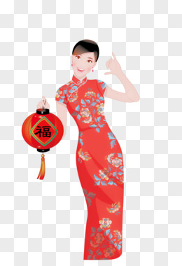 卡通穿旗袍的女拍卖员拍卖古董免抠元素