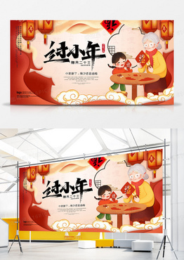 手绘卡通春节男孩女孩贴窗花场景免抠素材