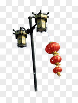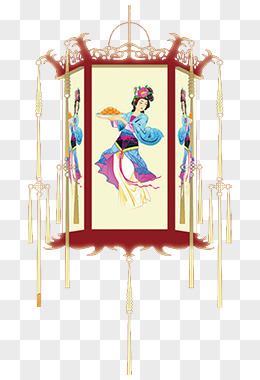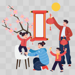 手绘卡通男人踩凳子挂灯笼免抠元素