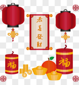 矢量灯笼与鞭炮