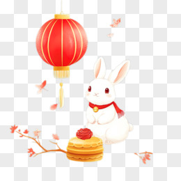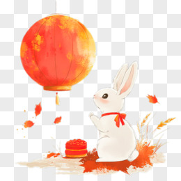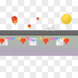手绘免抠玉兔灯笼围墙赏月元素