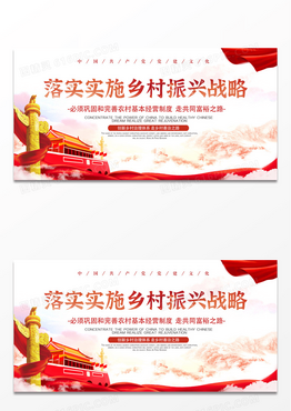 红色落实实施乡村振兴战略党建展板传统风格蓝调天安门华表