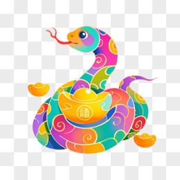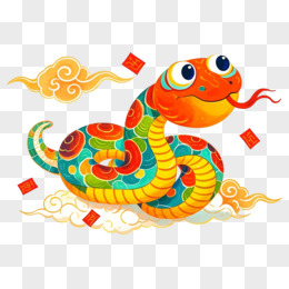 七彩祥云蛇年各类传统新年元素结合免抠元素