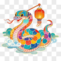 彩色灯笼蛇年各类传统新年元素结合免抠元素