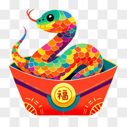 站在元宝里蛇年各类传统新年元素结合免抠元素