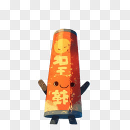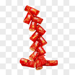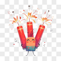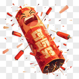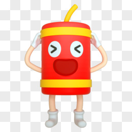 卡通风新年元素一个小人抱着三个爆竹免抠元素
