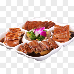 一组卡通水彩风粤式点心小吃合集插画烧鸭元素